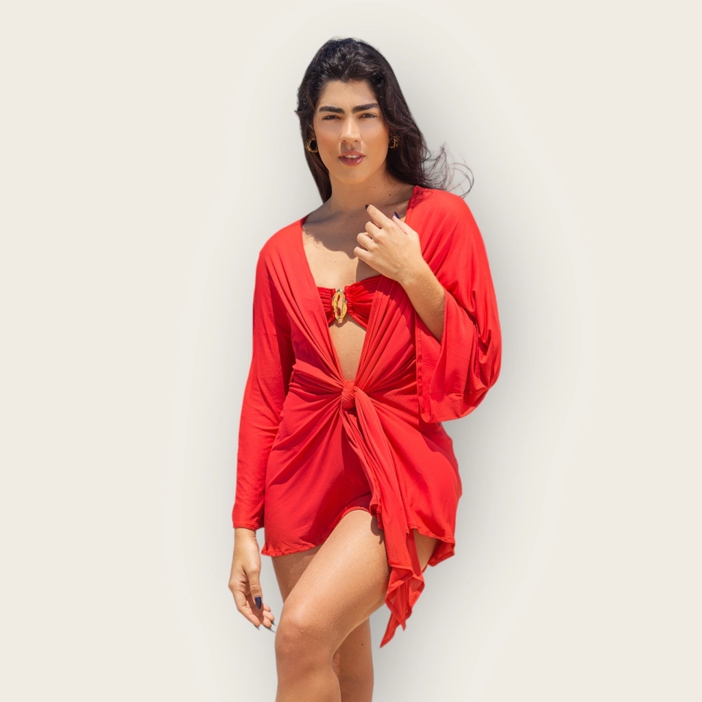 Saída de praia estilo Kimono , podendo ser usado aberto ou fechado, super prático e chique.